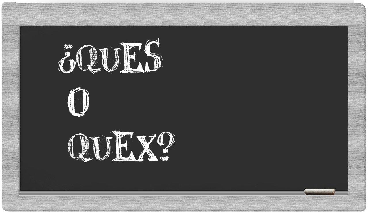 Cuando se trata de discernir entre ques y quex, la elección es clara y sin incertidumbres, puesto que exclusivamente ques se encuentra correctamente redactada; además, es importante señalar que quex no figura en el repertorio del Diccionario de la Real Academia Española.