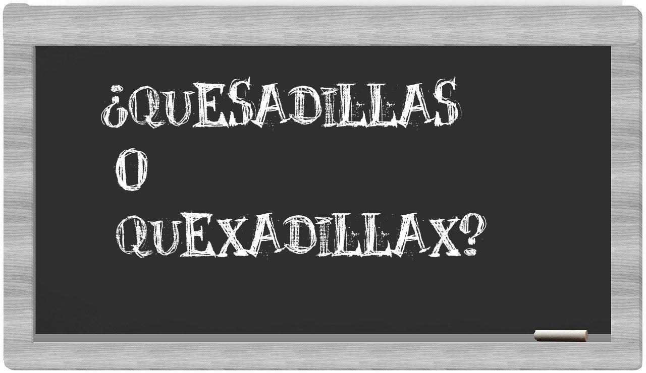 Cuando se trata de elegir entre quesadillas y quexadillax, la decisión es evidente, puesto que solo quesadillas refleja la forma adecuadamente registrada, mientras que quexadillax no se encuentra en el repertorio del Diccionario de la Real Academia Española.