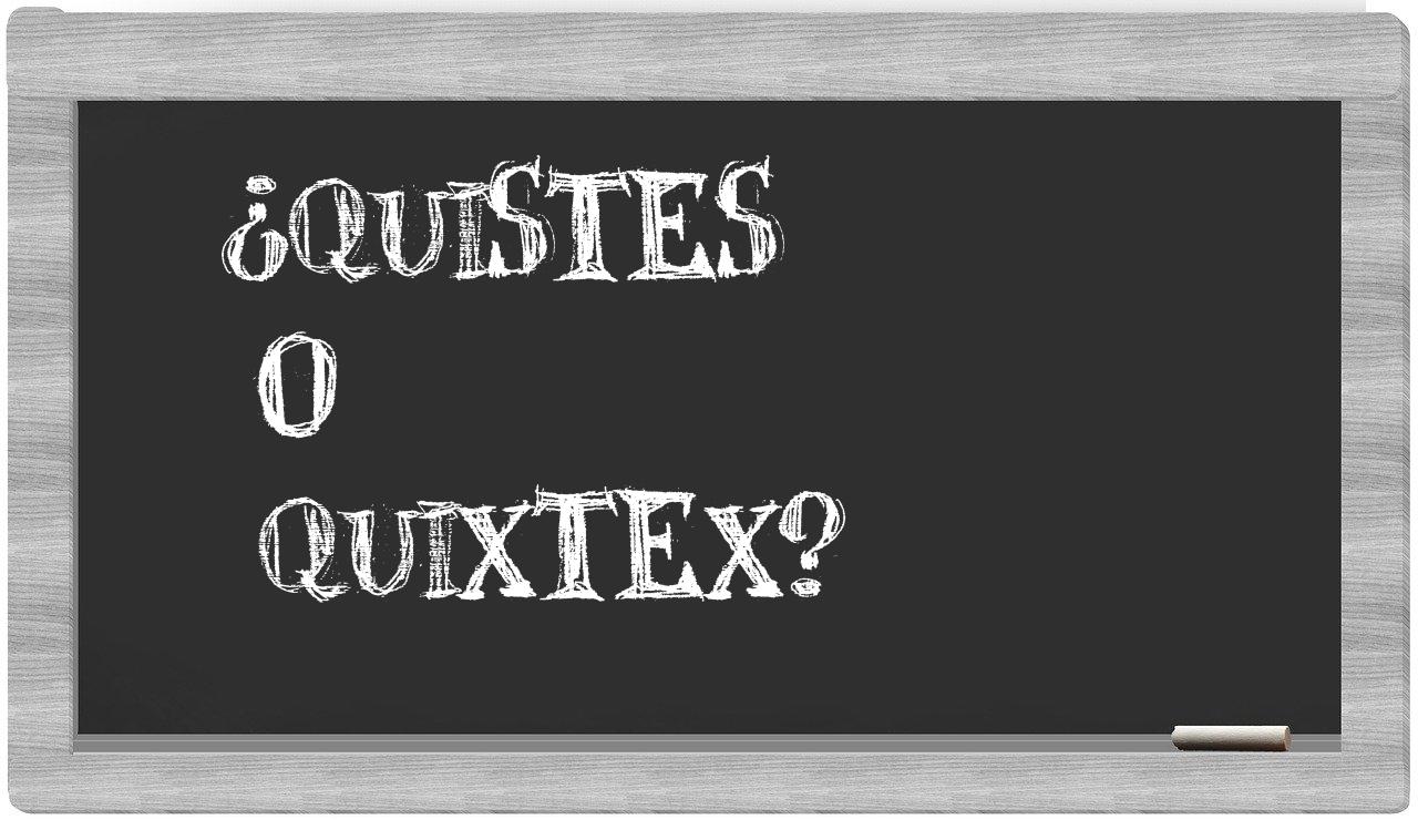 En la particular relación entre los términos quistes y quixtex, la elección debe ser evidente, porque únicamente quistes se encuentra debidamente registrada en el léxico oficial. Por otro lado, quixtex no forma parte del repertorio de la Real Academia de la Lengua.