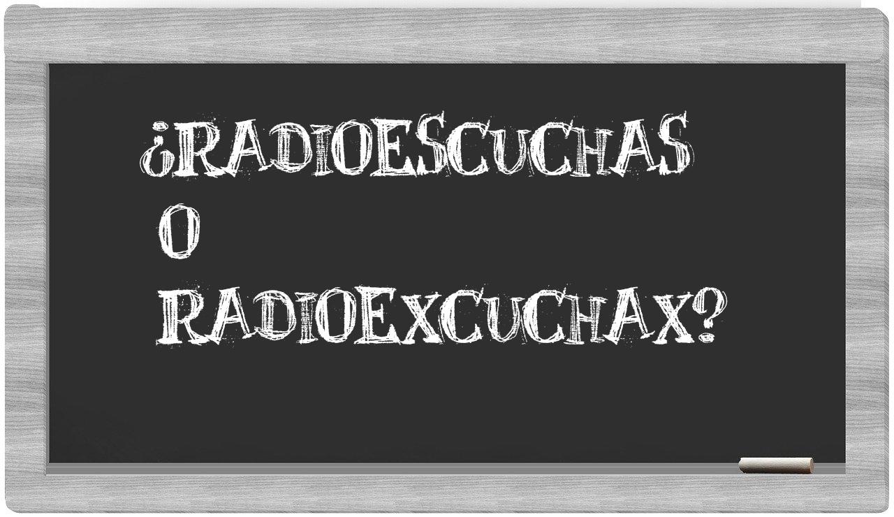 Cuando se presenta la elección entre radioescuchas y radioexcuchax, la decisión debe ser clara y sin titubeos, puesto que únicamente radioescuchas es la forma adecuada. Por otro lado, radioexcuchax no figura en el Diccionario de la Real Academia Española.