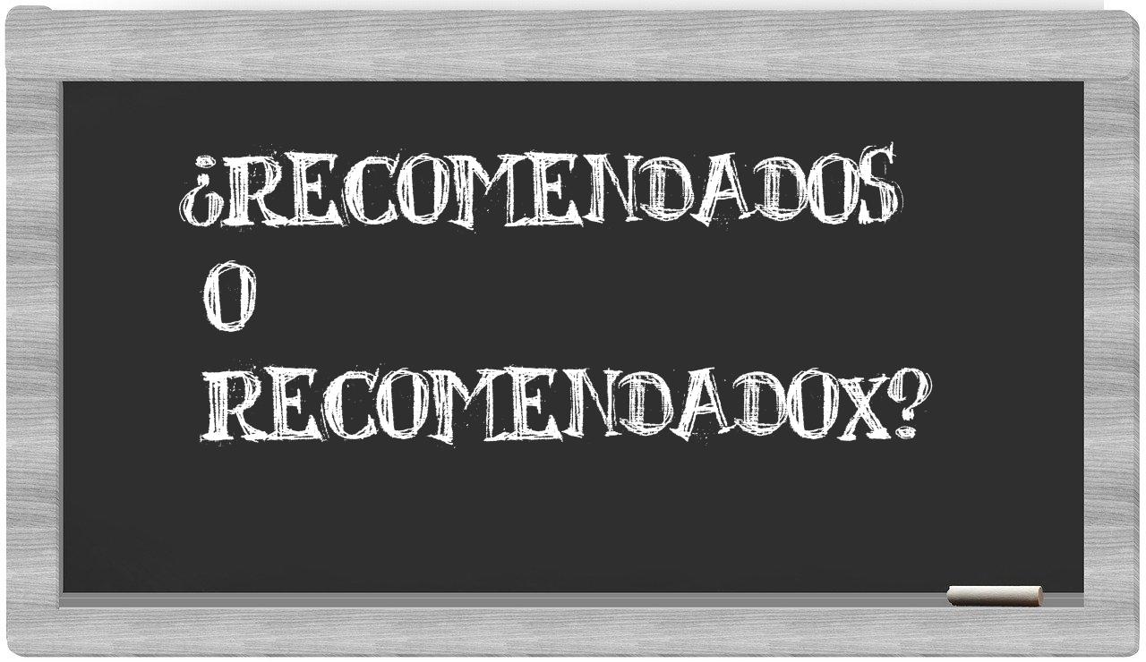 En la situación particular que se presenta entre recomendados y recomendadox, es fundamental que no titubees, pues solo recomendados está debidamente registrada en la lengua española. Por otro lado, recomendadox no se encuentra en el vocabulario de la Real Academia Española.