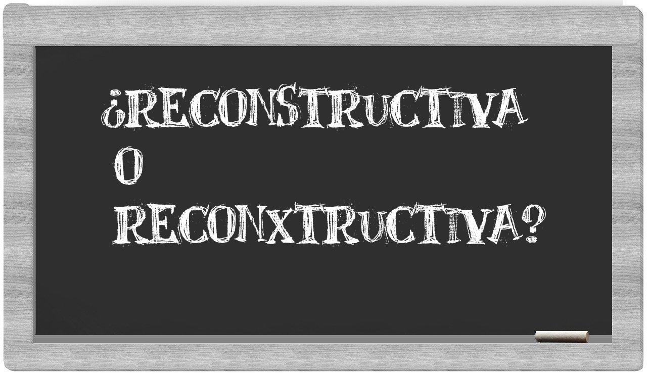 Cuando se trata de la distinción entre reconstructiva y reconxtructiva, no hay lugar para la indecisión, puesto que únicamente reconstructiva se encuentra adecuadamente plasmada en el lenguaje. Por otro lado, reconxtructiva no figura en el Diccionario de la Real Academia Española como una opción válida.