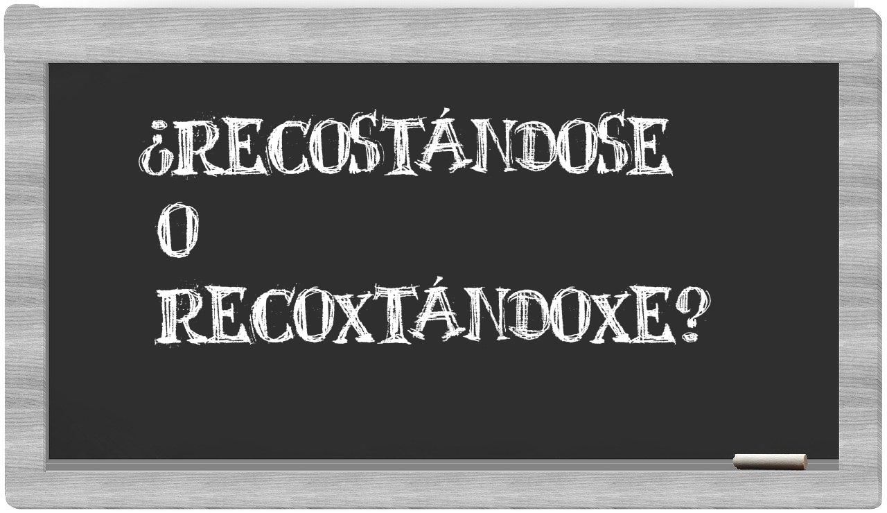 Cuando se trata del dilema entre los términos recostándose y recoxtándoxe, no debes titubear, puesto que solo recostándose se encuentra debidamente registrada; en cambio, recoxtándoxe carece de presencia en el Diccionario de la Real Academia de la Lengua.