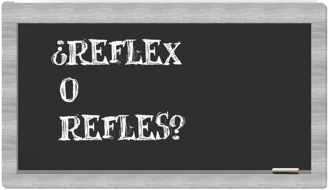 Cuando se trata de elegir entre las expresiones reflex y refles, nunca deberías titubear, puesto que únicamente reflex es la que está adecuadamente redactada. Por otro lado, refles no figura en el léxico oficial de la Real Academia Española.