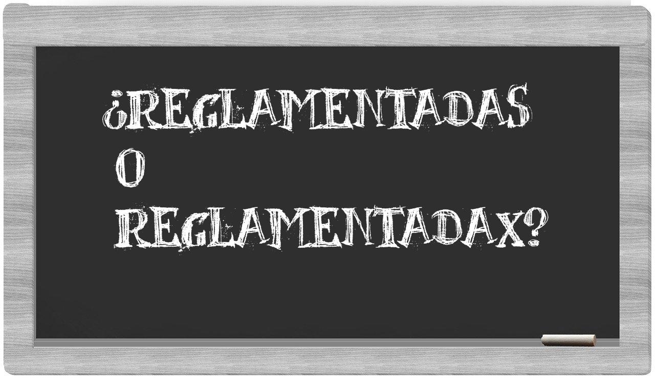 En la situación específica que involucra las palabras reglamentadas y reglamentadax, no hay razón para titubear, porque únicamente reglamentadas se presenta de manera adecuada, mientras que reglamentadax no se encuentra registrado en el Diccionario de la Real Academia Española.