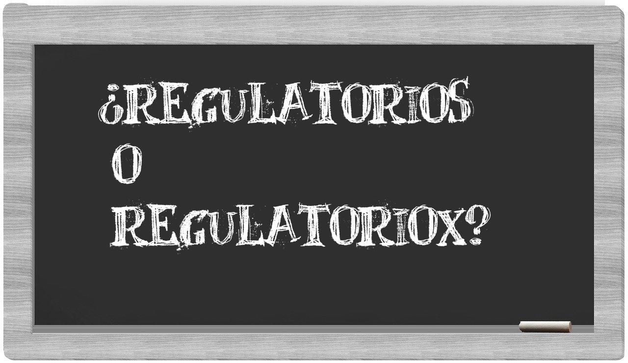 Cuando te enfrentes a la elección entre regulatorios y regulatoriox, es fundamental que no vaciles, puesto que únicamente regulatorios representa la forma adecuada. Recuerda que regulatoriox no está recogida en el Diccionario de la Real Academia Española.
