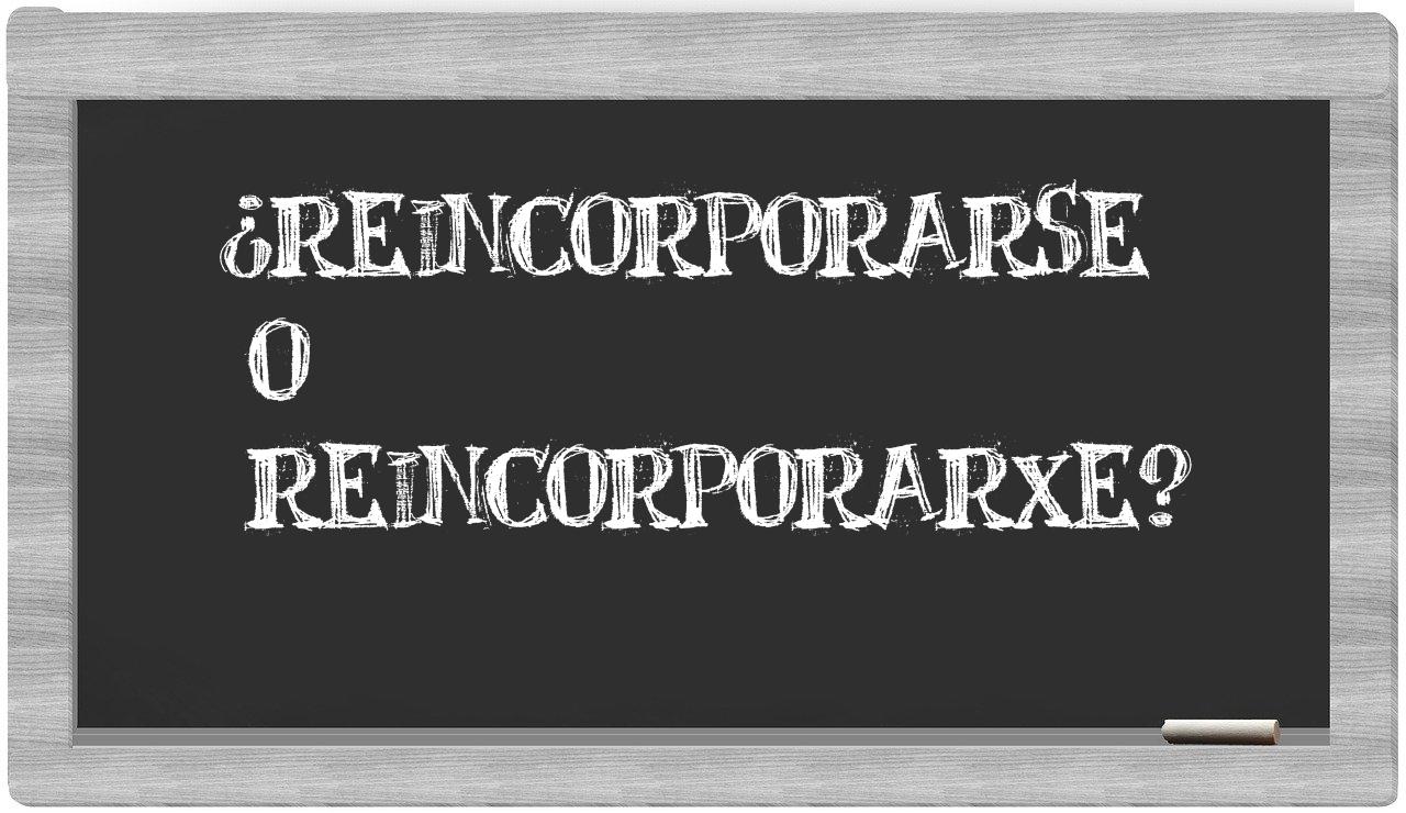 Cuando se presenta la disyuntiva entre reincorporarse y reincorporarxe, es fundamental no vacilar, dado que únicamente reincorporarse es la que se encuentra adecuadamente redactada. Por su parte, reincorporarxe no figura en el glosario de la Real Academia Española.