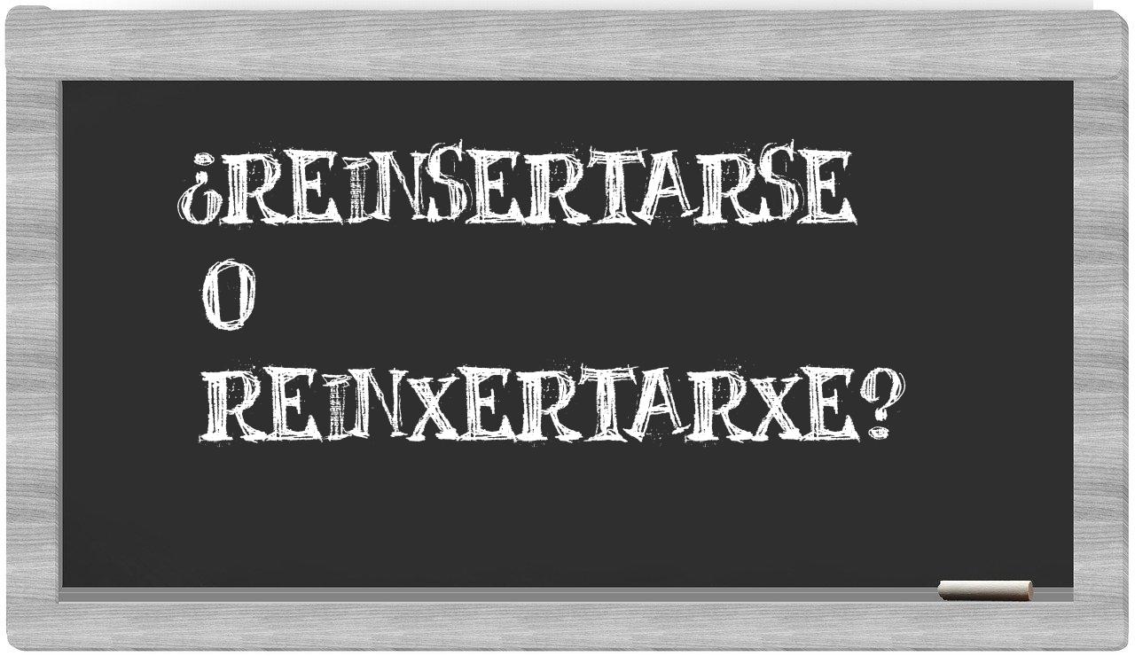 Cuando te enfrentes a la comparación de reinsertarse y reinxertarxe, ten siempre presente que la forma correcta es reinsertarse, pues reinxertarxe no tiene cabida en el Diccionario de la Real Academia de la Lengua.
