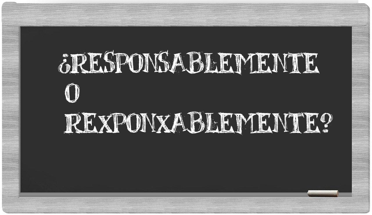 En la particular circunstancia que se presenta entre los términos responsablemente y rexponxablemente, nunca deberías titubear, puesto que únicamente responsablemente se encuentra correctamente redactado. Por otro lado, rexponxablemente no se halla en el léxico de la Real Academia Española.