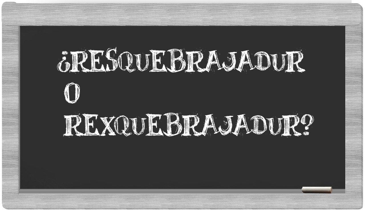 En la situación específica que involucra los términos resquebrajadur y rexquebrajadur, no debes titubear en tu elección, puesto que únicamente resquebrajadur se encuentra correctamente redactada. Por otro lado, rexquebrajadur no se encuentra registrada en el Diccionario de la Real Academia Española.