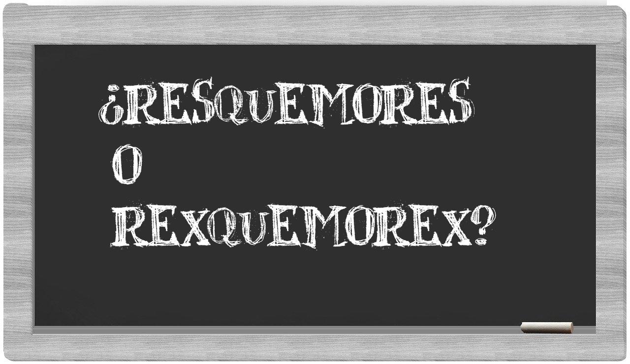 Cuando te enfrentes a la elección entre resquemores y rexquemorex, no vaciles ni un instante, porque únicamente resquemores es la forma adecuada, mientras que rexquemorex no se encuentra registrada en el Diccionario de la Real Academia Española.