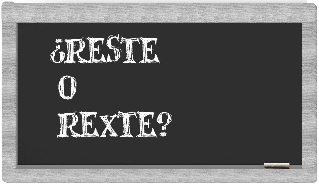 En la situación específica en la que se encuentren las voces reste y rexte, no deberías titubear, pues únicamente la forma reste es la que presenta una escritura adecuada. Por otro lado, rexte carece de presencia en el repertorio del Diccionario de la Real Academia Española.