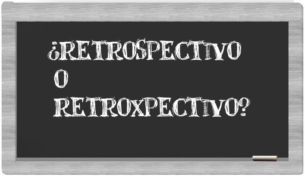 Cuando se trata de las expresiones retrospectivo y retroxpectivo, no hay motivo para la incertidumbre, dado que únicamente retrospectivo se encuentra debidamente registrada en el Diccionario de la Real Academia Española, mientras que retroxpectivo no figura entre sus entradas aceptadas.