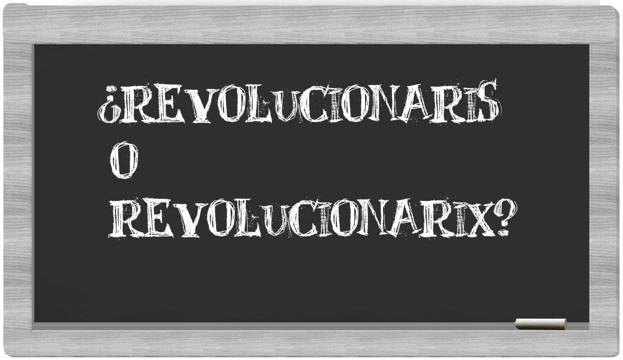 Cuando se trata de elegir entre revolucionaris y revolucionarix, no deberías titubear en absoluto, dado que solo revolucionaris se encuentra registrada correctamente, mientras que revolucionarix no tiene cabida en el Diccionario de la Real Academia Española.