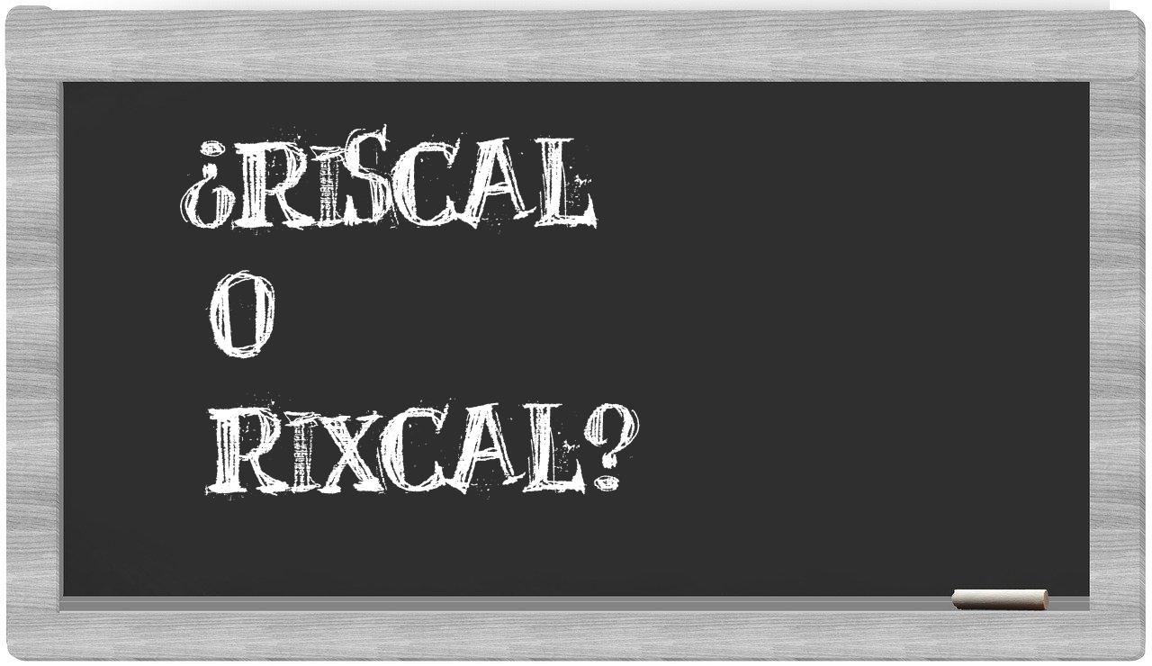 Cuando se trata de la distinción entre los términos riscal y rixcal, nunca deberías titubear, puesto que únicamente riscal es la opción adecuada. El término rixcal no figura en el Diccionario de la Real Academia Española.