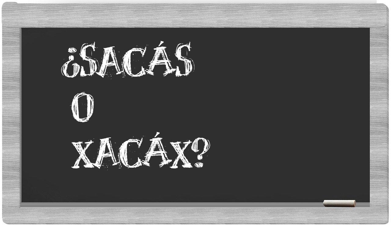 En la situación particular que involucra los términos sacás y xacáx, no hay motivo para vacilar, puesto que únicamente sacás se encuentra debidamente registrada. Por otro lado, xacáx no figura en el repertorio de la Real Academia Española.