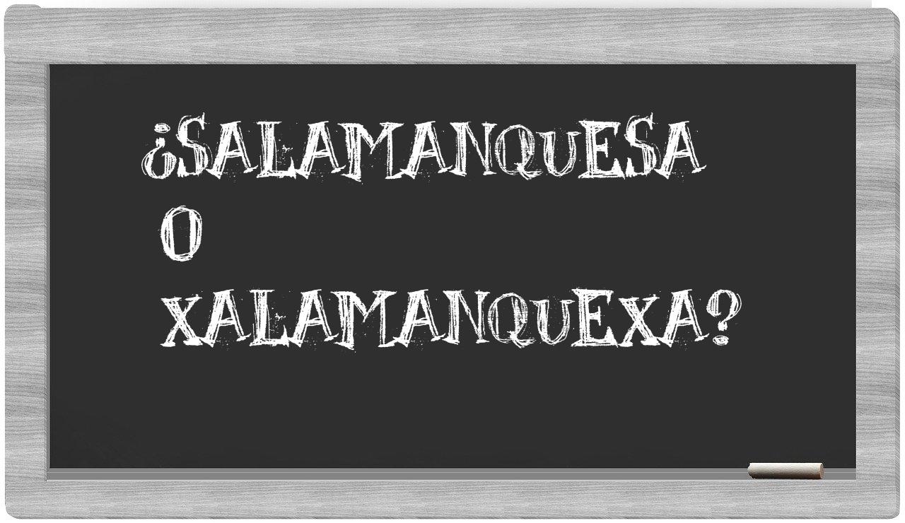 Cuando se trata de elegir entre salamanquesa y xalamanquexa, la decisión es evidente, puesto que solo salamanquesa refleja la forma adecuadamente registrada, mientras que xalamanquexa no se encuentra en el repertorio del Diccionario de la Real Academia Española.