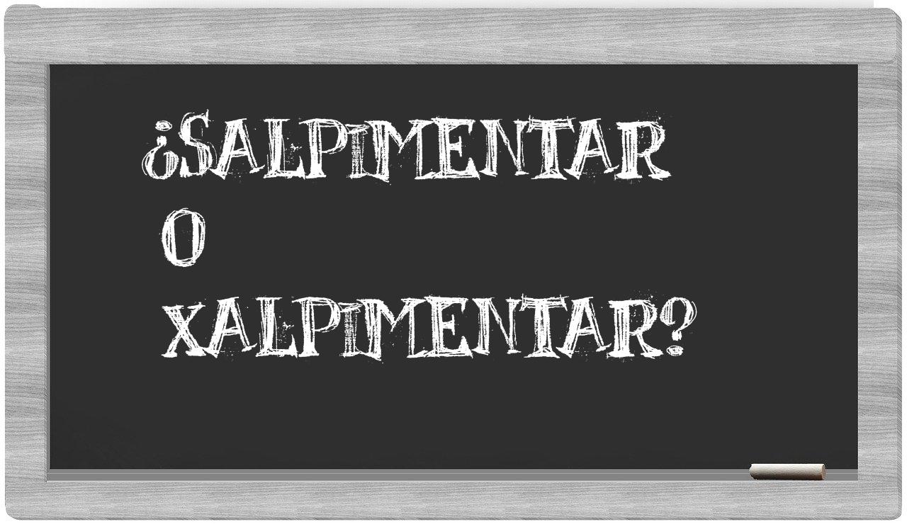 En la situación particular que involucra los términos salpimentar y xalpimentar, no deberías titubear en ningún momento, puesto que únicamente salpimentar es la forma correcta. La variante xalpimentar carece de reconocimiento en el Diccionario de la Real Academia Española.
