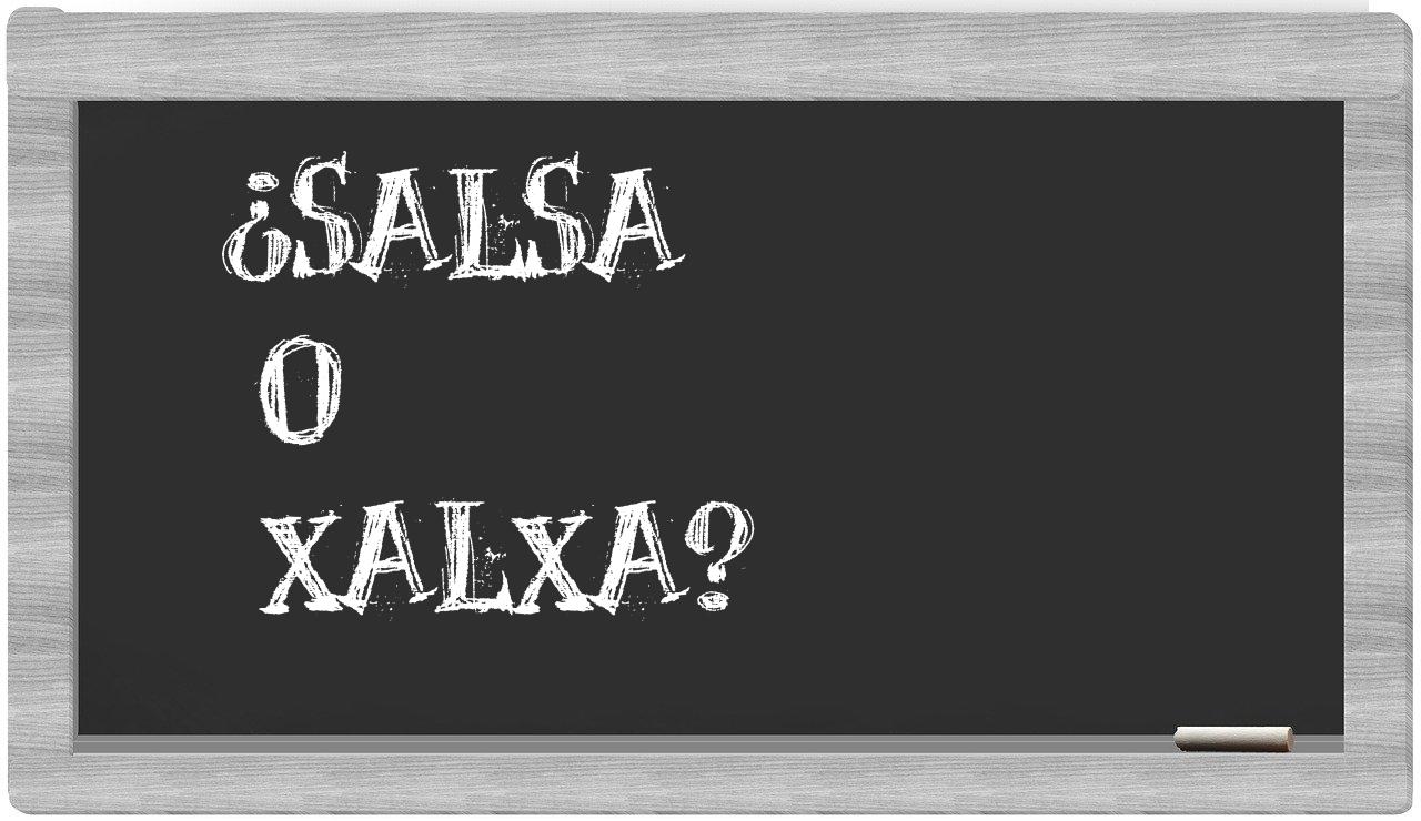En la situación particular que involucra los términos salsa y xalxa, no deberías titubear en ningún momento, puesto que únicamente salsa es la forma correcta. La variante xalxa carece de reconocimiento en el Diccionario de la Real Academia Española.