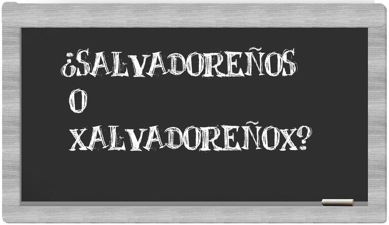En la situación particular que involucra las palabras salvadoreños y xalvadoreñox, no deberías titubear, porque únicamente salvadoreños es la que se encuentra debidamente registrada. La palabra xalvadoreñox, por otro lado, no figura en el Diccionario de la Real Academia Española.
