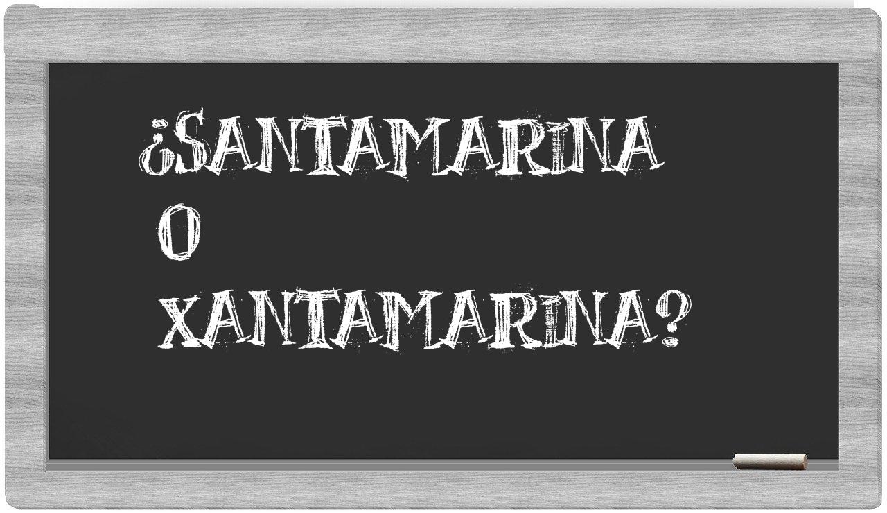 En lo que respecta a la comparación entre santamarina y xantamarina, nunca deberías experimentar incertidumbre, porque únicamente santamarina es la forma correcta de escribirlo. Por otra parte, xantamarina no tiene cabida en el Diccionario de la Real Academia Española.