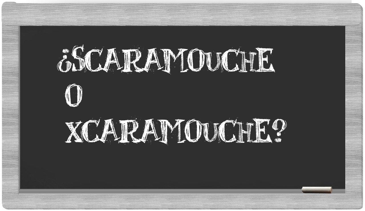 Cuando se trata de la relación entre scaramouche y xcaramouche, no hay lugar para la incertidumbre, puesto que scaramouche es la única que se encuentra registrada de manera adecuada, mientras que xcaramouche no forma parte del léxico del Diccionario de la Real Academia Española.