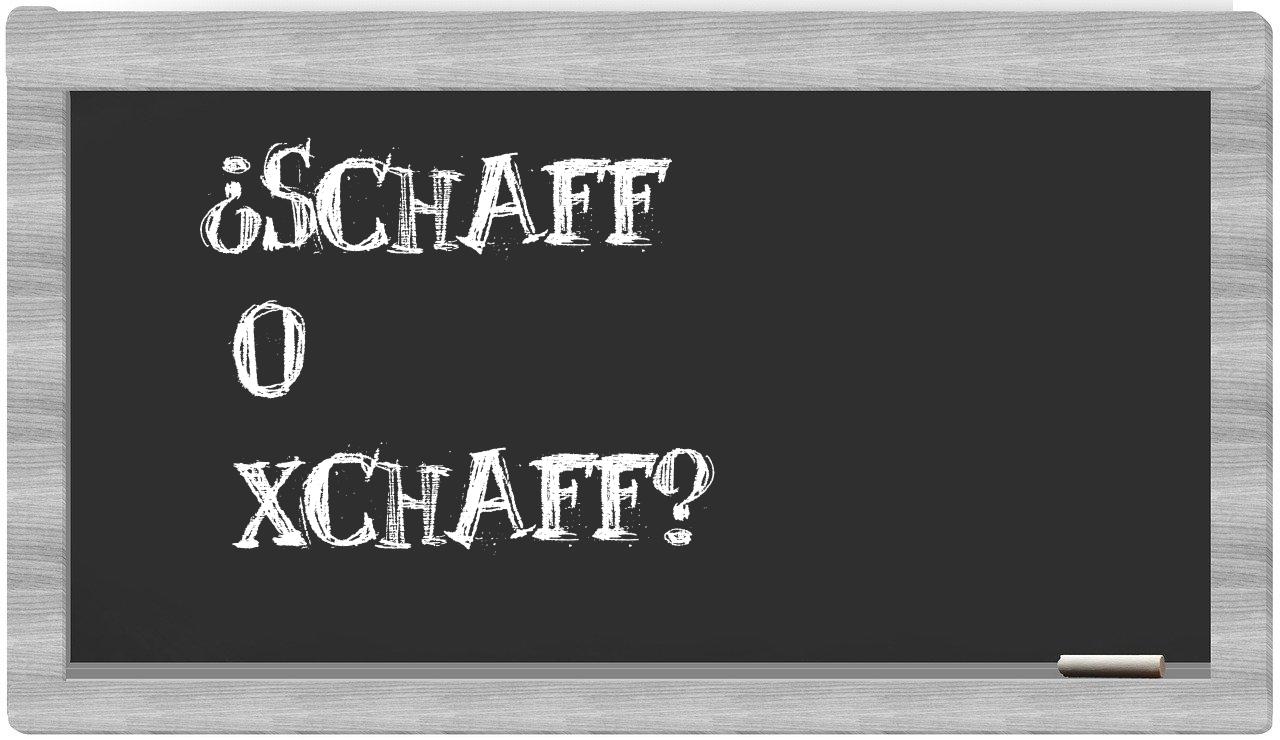 Cuando se trata del uso entre schaff y xchaff, la elección es clara y no debe ser objeto de incertidumbre, puesto que únicamente schaff se encuentra debidamente registrada en el Diccionario de la Real Academia Española, mientras que xchaff carece de presencia en él.