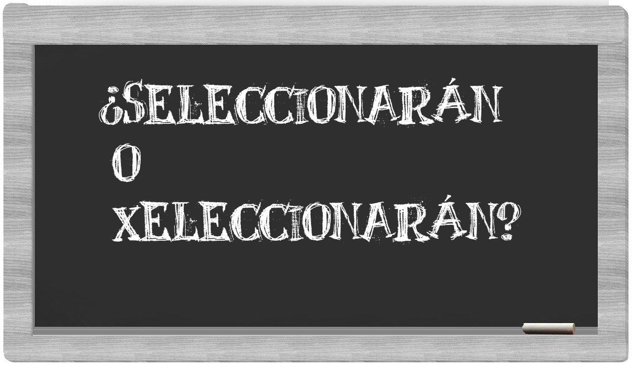 Cuando se trata de la comparación entre los términos seleccionarán y xeleccionarán, la elección es evidente, pues únicamente seleccionarán pertenece a la correcta forma escrita. Por otro lado, xeleccionarán no se encuentra registrado en el Diccionario de la Real Academia Española.