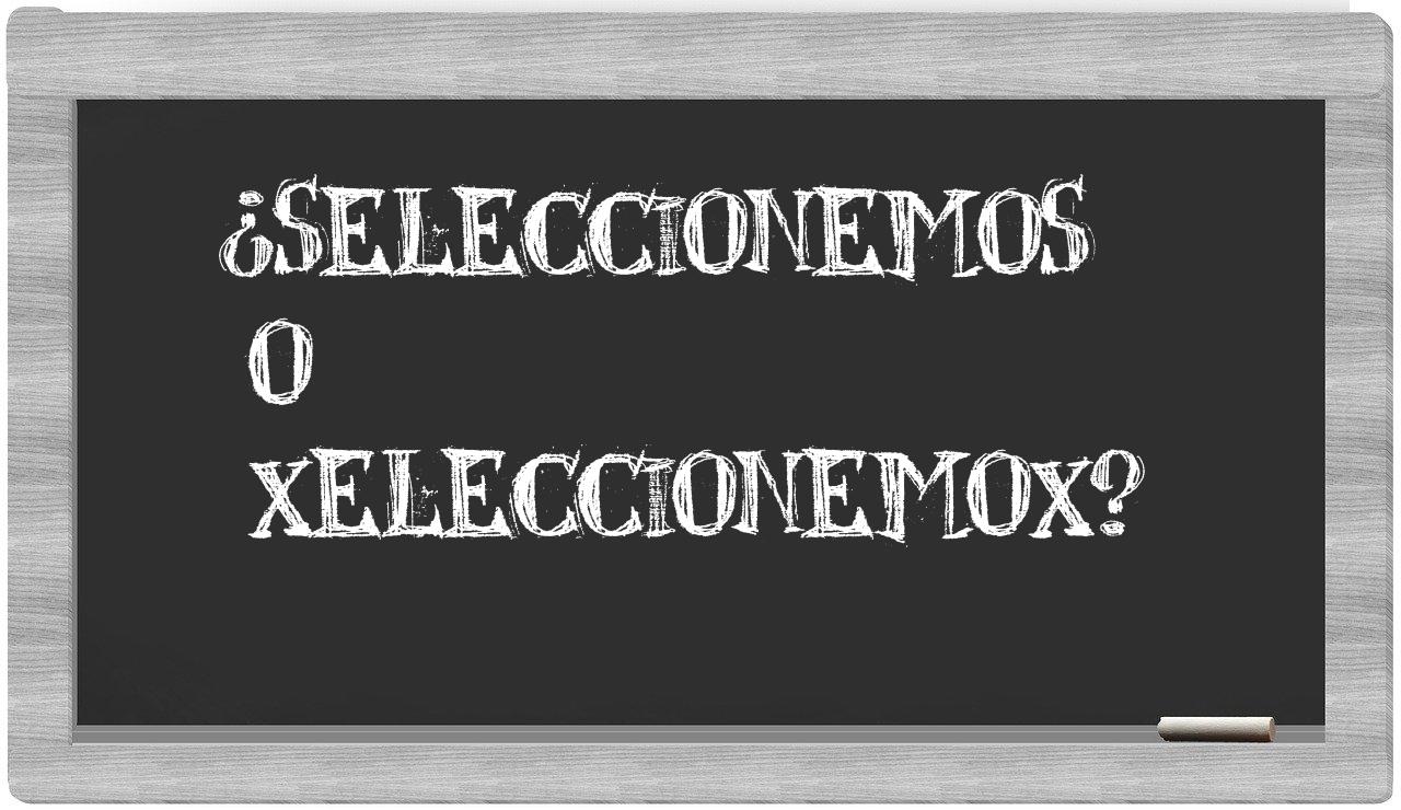 Cuando se trate de elegir entre los términos seleccionemos y xeleccionemox, es fundamental que tengas claridad, puesto que únicamente seleccionemos es la forma adecuada; xeleccionemox no está registrada en el Diccionario de la Real Academia Española.