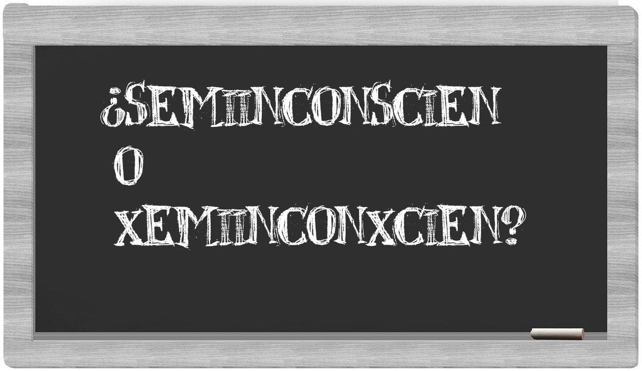Cuando se presenta la disyuntiva entre semiinconscien y xemiinconxcien, es fundamental no vacilar, dado que únicamente semiinconscien es la que se encuentra adecuadamente redactada. Por su parte, xemiinconxcien no figura en el glosario de la Real Academia Española.