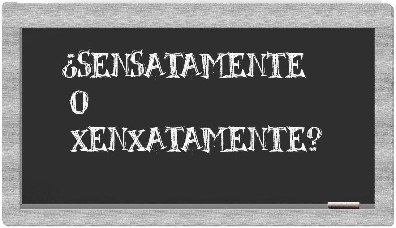 Cuando se presenta la disyuntiva entre sensatamente y xenxatamente, no hay lugar para la incertidumbre, puesto que únicamente sensatamente es la forma adecuada, mientras que xenxatamente no está registrada en el Diccionario de la Real Academia Española.