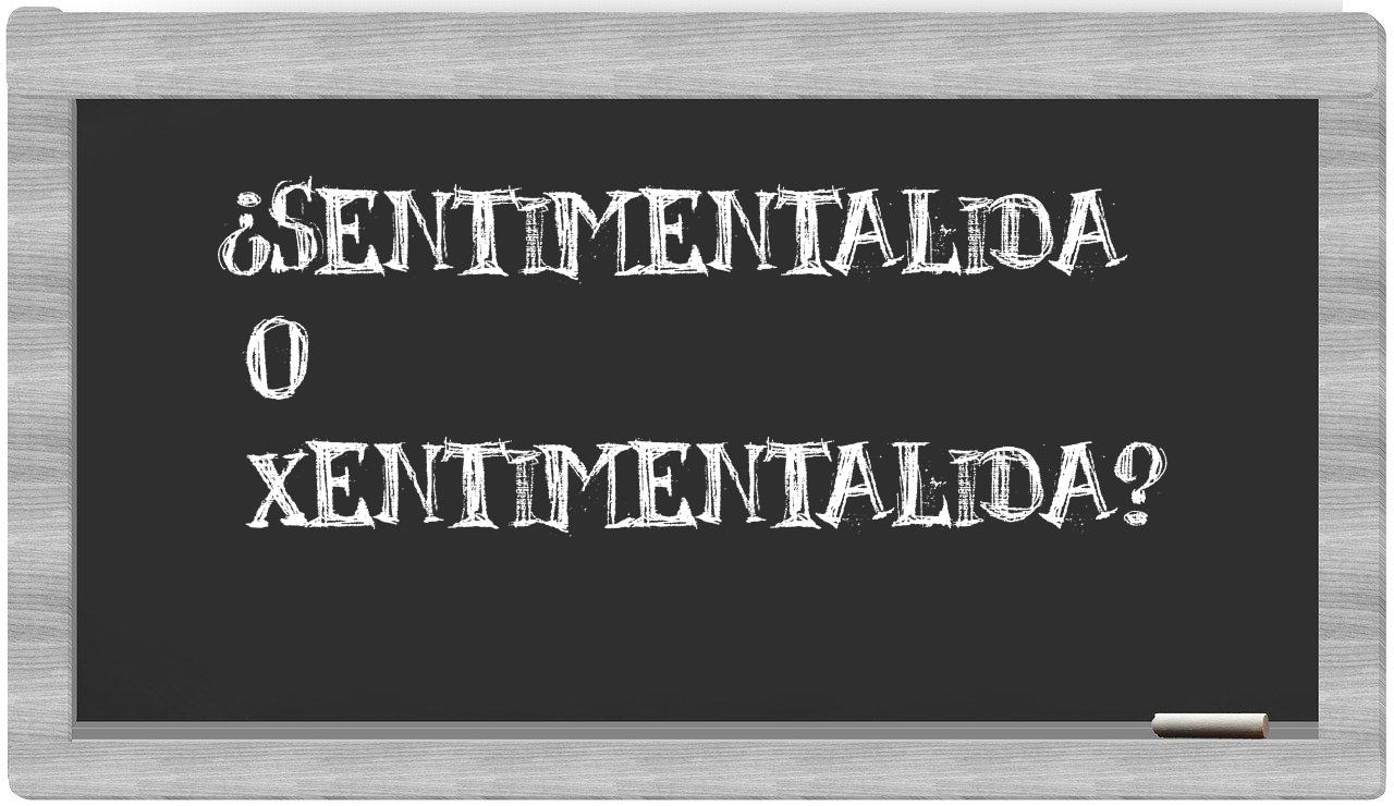 Cuando se trata de la distinción entre sentimentalida y xentimentalida, no hay razón para dudar, porque es indiscutible que únicamente sentimentalida se presenta de manera adecuada. Además, xentimentalida no se encuentra en el repertorio del Diccionario de la Real Academia Española.