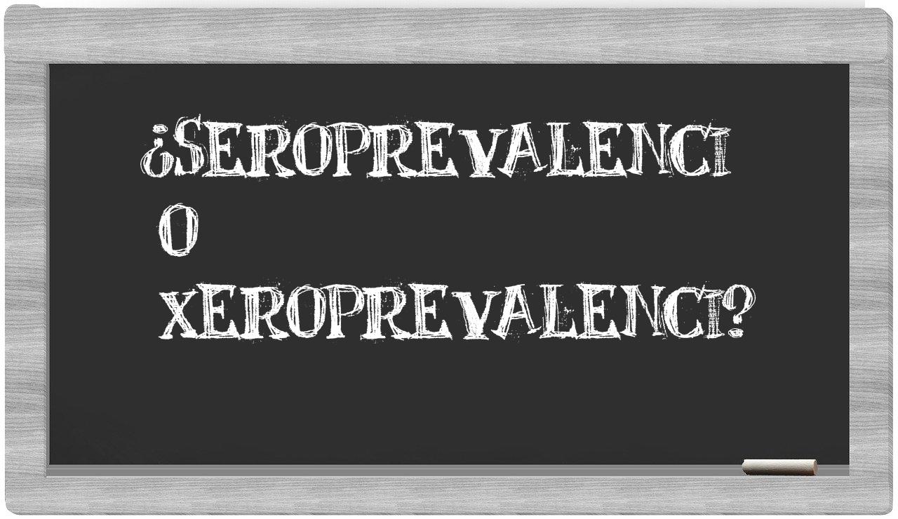 En la particular circunstancia de optar entre los términos seroprevalenci y xeroprevalenci, no deberías titubear en absoluto, dado que únicamente seroprevalenci es la forma adecuada. Por otra parte, xeroprevalenci carece de reconocimiento en el Diccionario de la Real Academia Española.