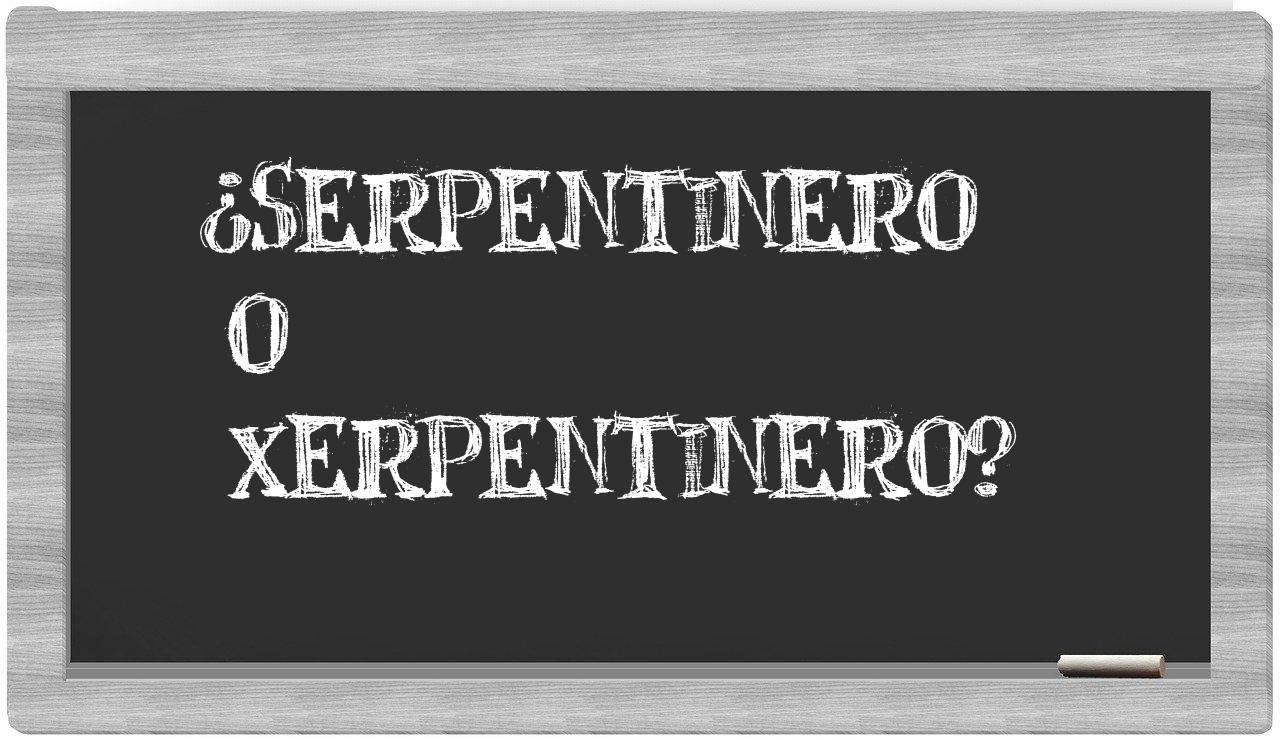 En la situación específica que involucra a serpentinero y xerpentinero, es importante que no tengas incertidumbre, puesto que únicamente serpentinero se encuentra debidamente registrada en el diccionario de la Real Academia Española, mientras que xerpentinero no figura en él.