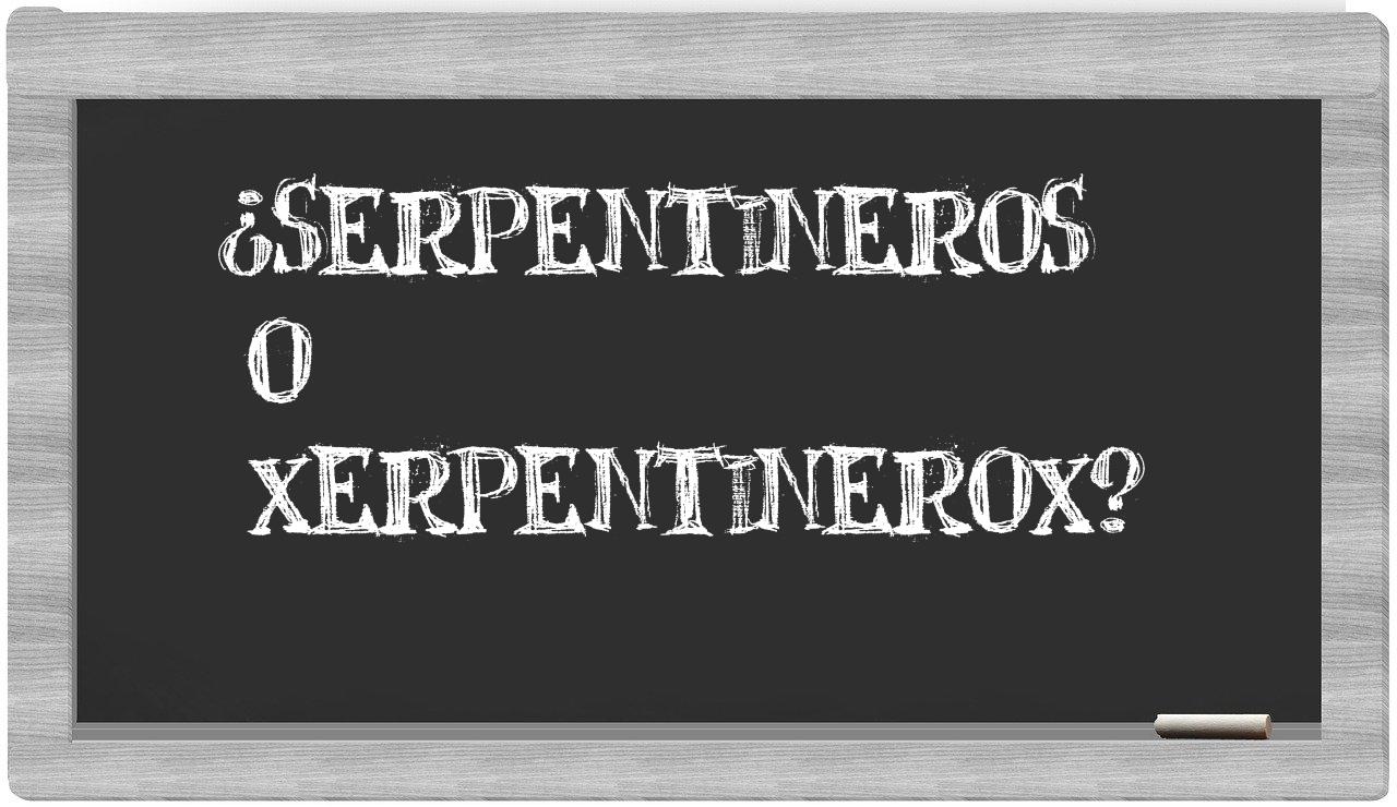 Cuando se trata de la elección entre serpentineros y xerpentinerox, es fundamental que no te confundas, puesto que solo serpentineros es la forma adecuada, mientras que xerpentinerox no tiene cabida en el prestigioso Diccionario de la Real Academia Española.