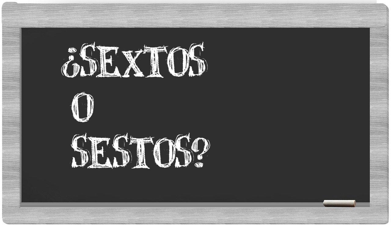 Cuando se trata de elegir entre sextos y sestos, no deberías titubear en absoluto, puesto que únicamente sextos es la forma adecuada según las normas lingüísticas. Por su parte, sestos no figura en el Diccionario de la Real Academia Española.