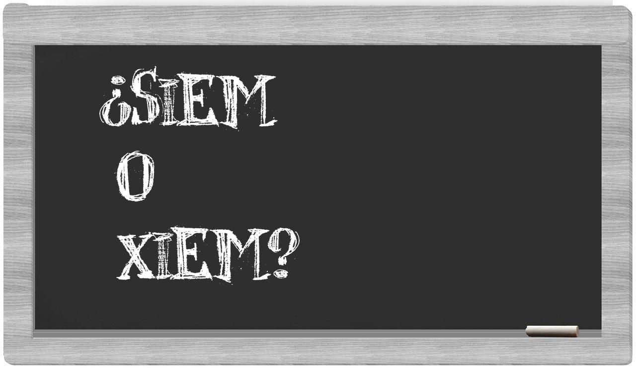 En la situación específica que se presenta entre siem y xiem, la confianza en tu elección no debería vacilar, puesto que únicamente siem es la opción que se encuentra debidamente registrada. Por otro lado, xiem no figura en el prestigioso Diccionario de la Real Academia Española.