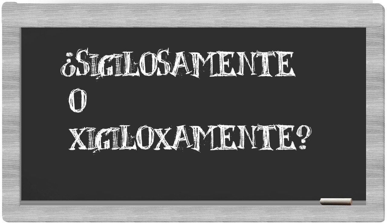 En lo que respecta específicamente a las expresiones sigilosamente y xigiloxamente, no hay lugar para la incertidumbre, pues únicamente sigilosamente se encuentra correctamente redactada, mientras que xigiloxamente no figura en el repertorio del Diccionario de la Real Academia de la Lengua.