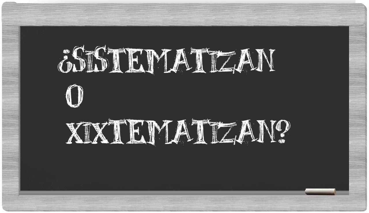 Cuando se trate de la elección entre sistematizan y xixtematizan, no deberías titubear, pues únicamente sistematizan se presenta con la ortografía adecuada. Por otro lado, xixtematizan no figura en el Diccionario de la Real Academia Española.
