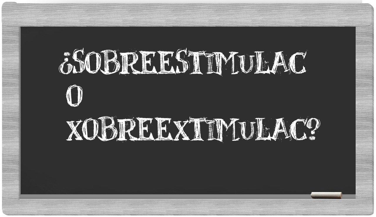Cuando te enfrentes a la elección entre sobreestimulac y xobreextimulac, no vaciles ni un instante, porque únicamente sobreestimulac es la forma adecuada, mientras que xobreextimulac no se encuentra registrada en el Diccionario de la Real Academia Española.
