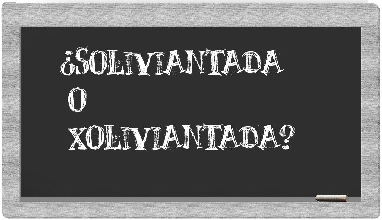 En la situación particular que compara los términos soliviantada y xoliviantada, no deberías vacilar, pues únicamente soliviantada es la forma correcta de escribirlo; la palabra xoliviantada no está registrada en el Diccionario de la Real Academia Española.