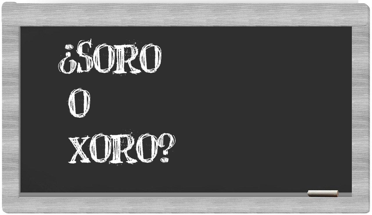 En la particularidad que rodea a las voces soro y xoro, nunca deberías titubear, porque es únicamente soro la que se presenta de manera adecuada. La forma xoro no figura en el Diccionario de la Real Academia Española.