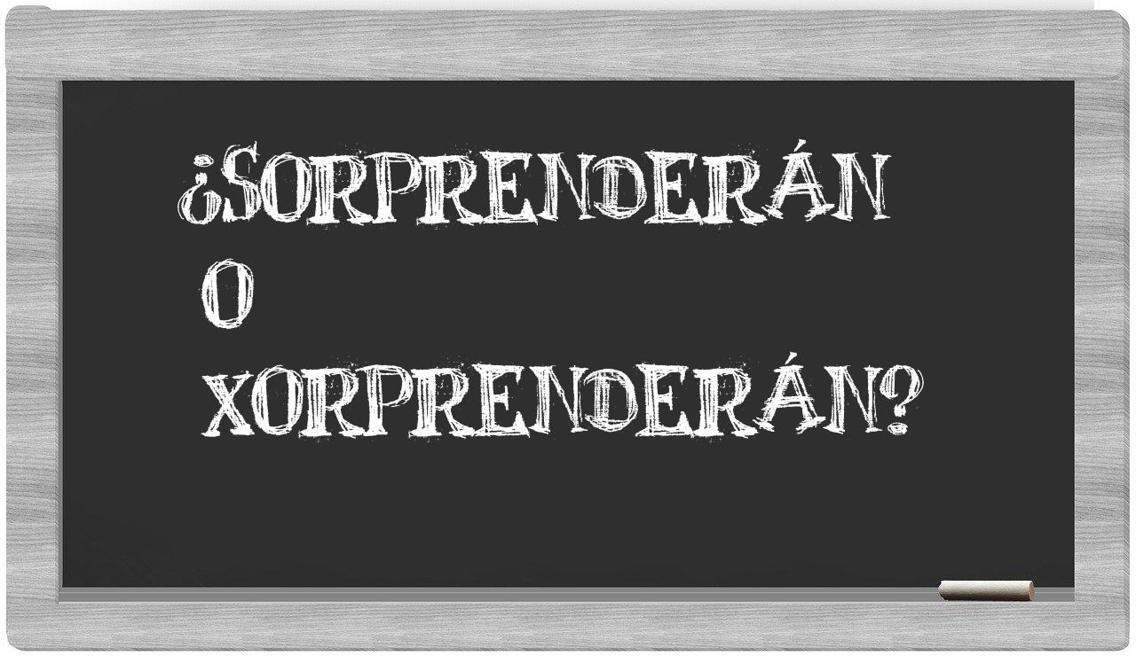 En la situación particular que involucra los términos sorprenderán y xorprenderán, nunca deberías titubear, pues únicamente sorprenderán es el que está redigido adecuadamente. Por otro lado, xorprenderán no se encuentra registrado en el Diccionario de la Real Academia Española.