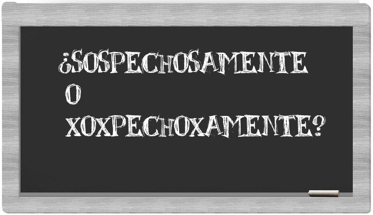 Cuando te enfrentes a la disyuntiva entre sospechosamente y xoxpechoxamente, no hay lugar para la incertidumbre, porque únicamente sospechosamente es la que se encuentra validada y aceptada, mientras que xoxpechoxamente no figura en el prestigioso Diccionario de la Real Academia Española.
