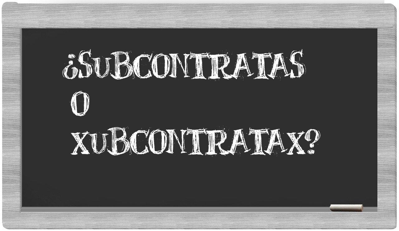Respecto a la distinción que existe entre los términos subcontratas y xubcontratax, es crucial que no vaciles, porque únicamente subcontratas se encuentra registrada de manera adecuada. El término xubcontratax no figura en el Diccionario de la Real Academia Española.