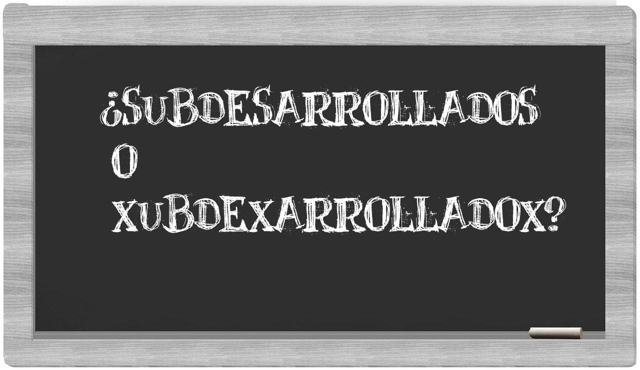 Cuando se trata de elegir entre subdesarrollados y xubdexarrolladox, no deberías titubear en absoluto, puesto que únicamente subdesarrollados es la forma adecuada según las normas lingüísticas. Por su parte, xubdexarrolladox no figura en el Diccionario de la Real Academia Española.