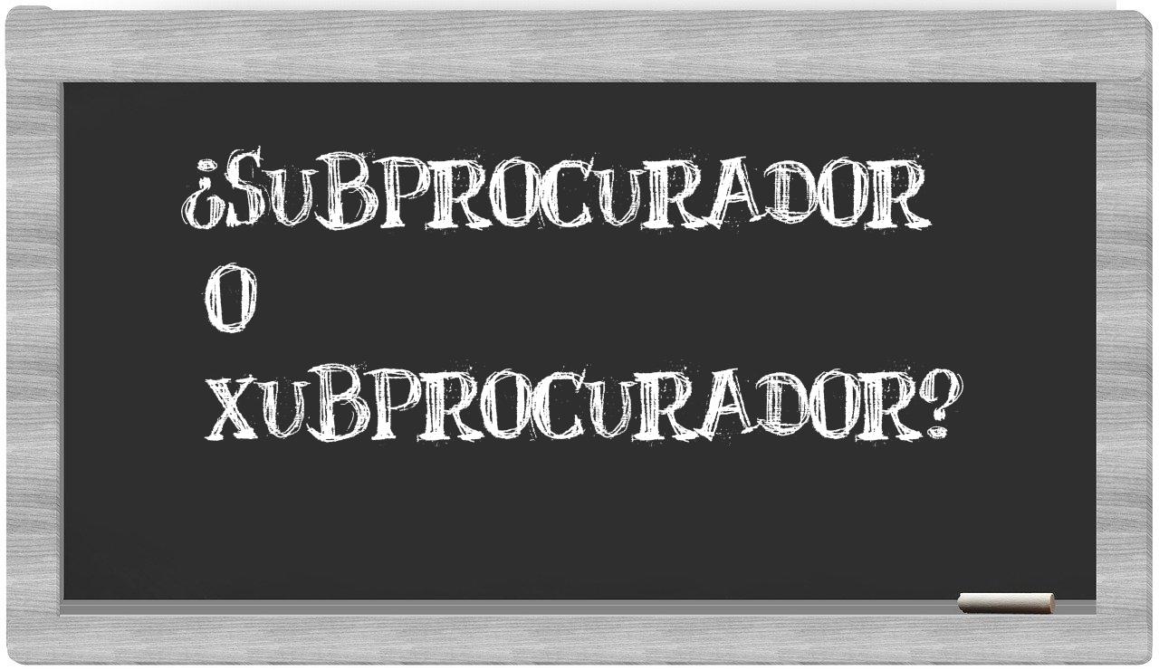 Cuando se trata de la relación entre subprocurador y xubprocurador, no hay lugar para la incertidumbre, puesto que subprocurador es la única que se encuentra registrada de manera adecuada, mientras que xubprocurador no forma parte del léxico del Diccionario de la Real Academia Española.