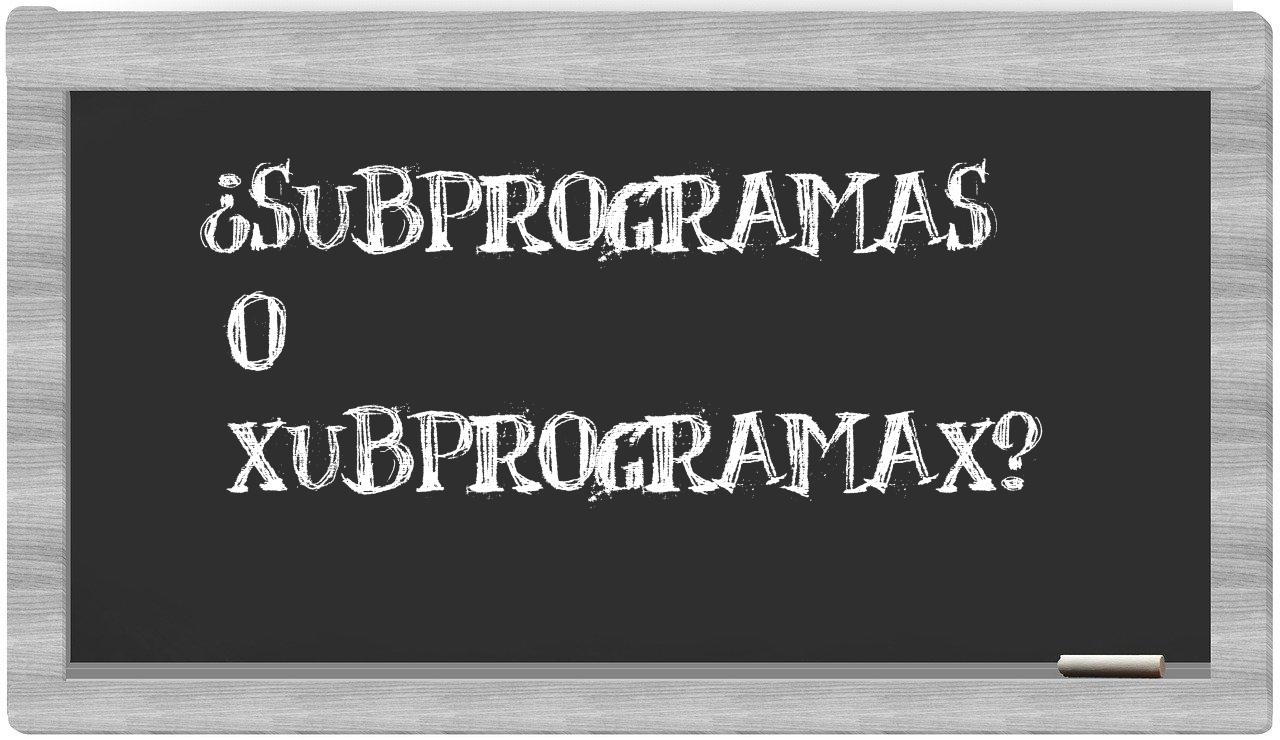 Cuando se presente la elección entre subprogramas y xubprogramax, no vaciles ni un instante, porque únicamente subprogramas es la opción que se encuentra debidamente registrada en el Diccionario de la Real Academia Española, mientras que xubprogramax carece de tal reconocimiento.