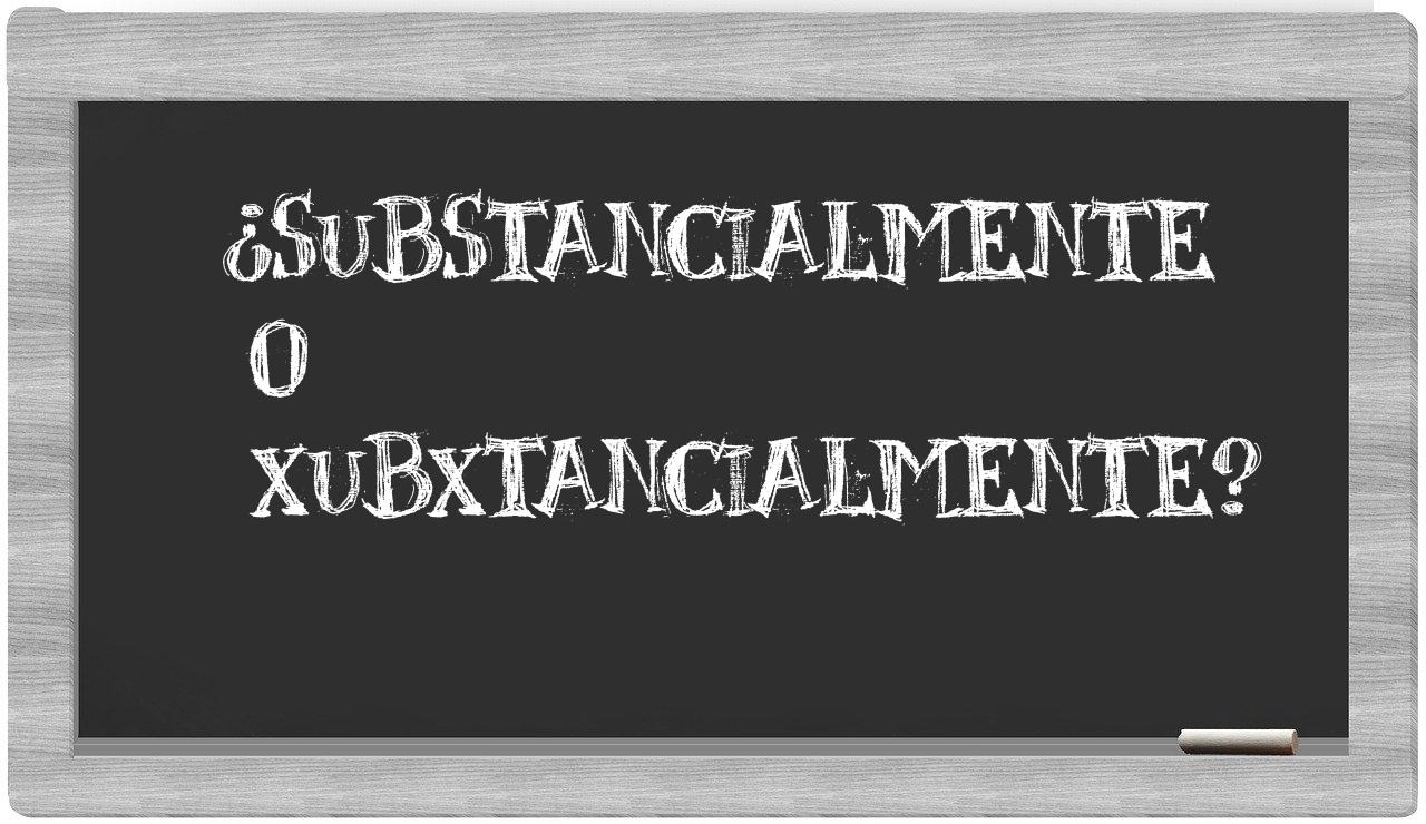 Cuando te enfrentes a la disyuntiva entre substancialmente y xubxtancialmente, no hay lugar para la incertidumbre, porque únicamente substancialmente es la que se encuentra validada y aceptada, mientras que xubxtancialmente no figura en el prestigioso Diccionario de la Real Academia Española.