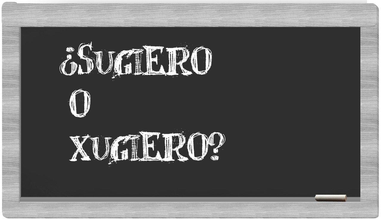 Cuando se trata de la elección entre sugiero y xugiero, no hay lugar para la incertidumbre, puesto que únicamente sugiero se presenta como la forma adecuada; xugiero ni siquiera figura en el diccionario de la Real Academia Española.